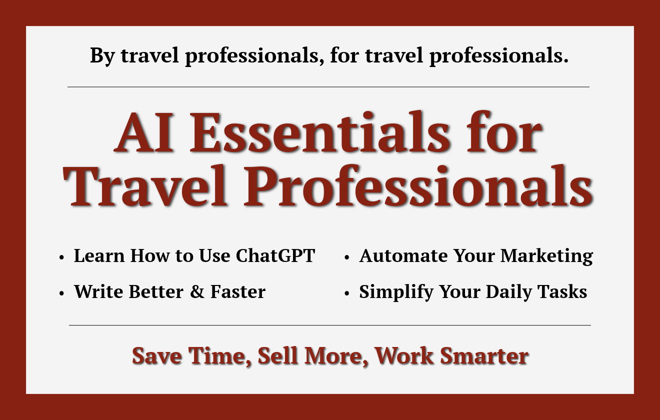 👉 This is just a fraction of what we’ll cover inside AI Essentials for Travel Professionals, where you’ll get complete workflows designed for proposals, marketing, client communication, and more.
